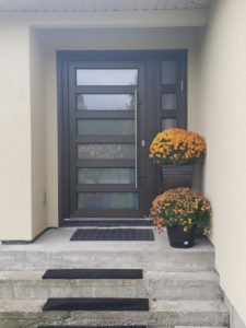 Infill panels are included in door leaves, and the elements can be milled, decorated with applications or made of insulated glass. Paneled doors can be fabricated very large and high – up to 1.40 m (W) and almost 2.60 m (H). If, therefore, you dream of an impressive front entrance, this will be the perfect choice. But above all, the door should fit to the style of your home. If our interiors are the traditional ones, we should opt for a leaf with glass panels or wooden-like veneer. Lovers of modern interior can choose among RAL colours, think shade of graphite.